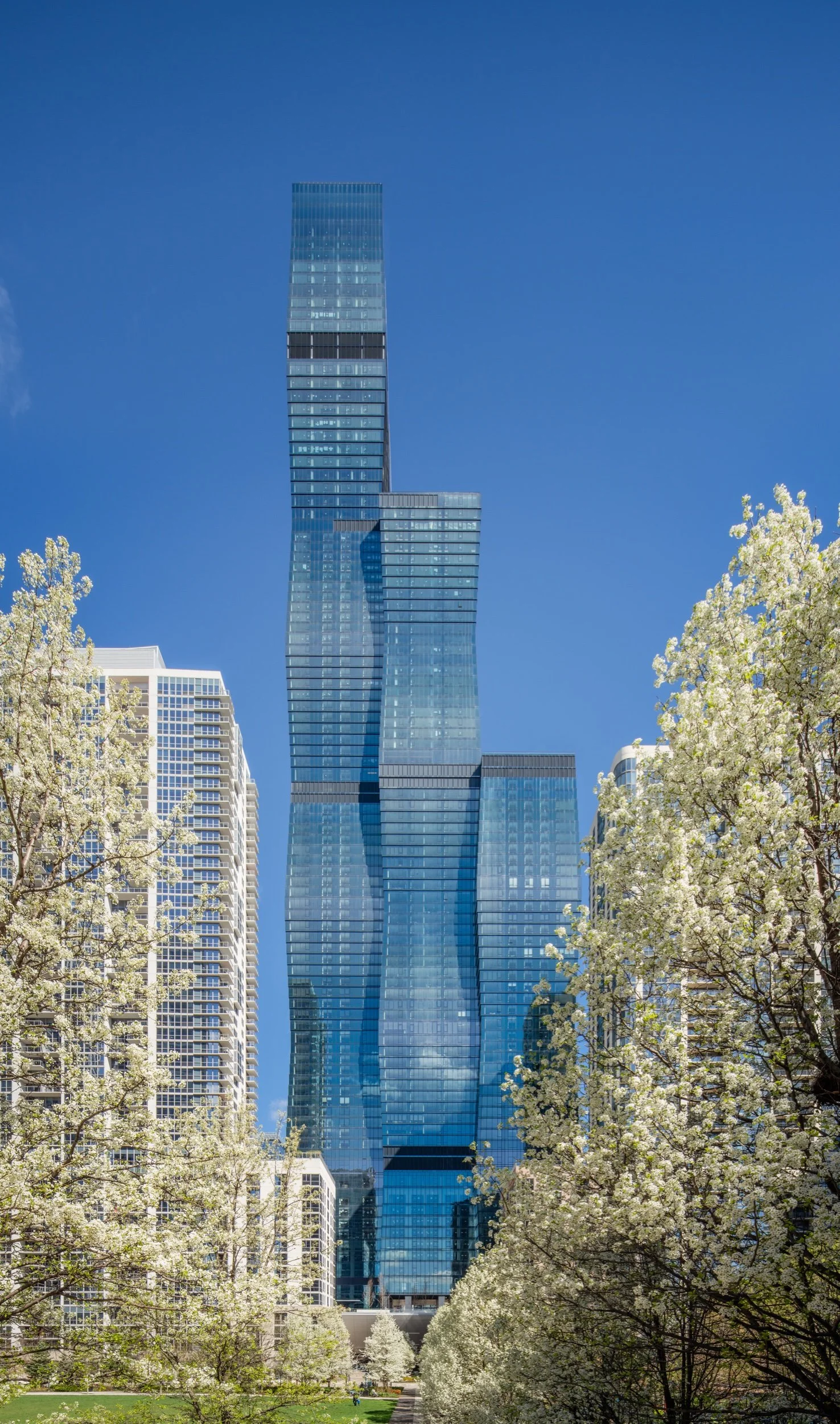 The St. Regis Chicago brings the iconic brand’s glamorous spirit and celebrated rituals to the Midwest. The tower’s crystalline form was inspired by nature with its facets of a shimmering gem and its gradient of green-blue glass that reflects the colors of Lake Michigan and the Chicago River.
