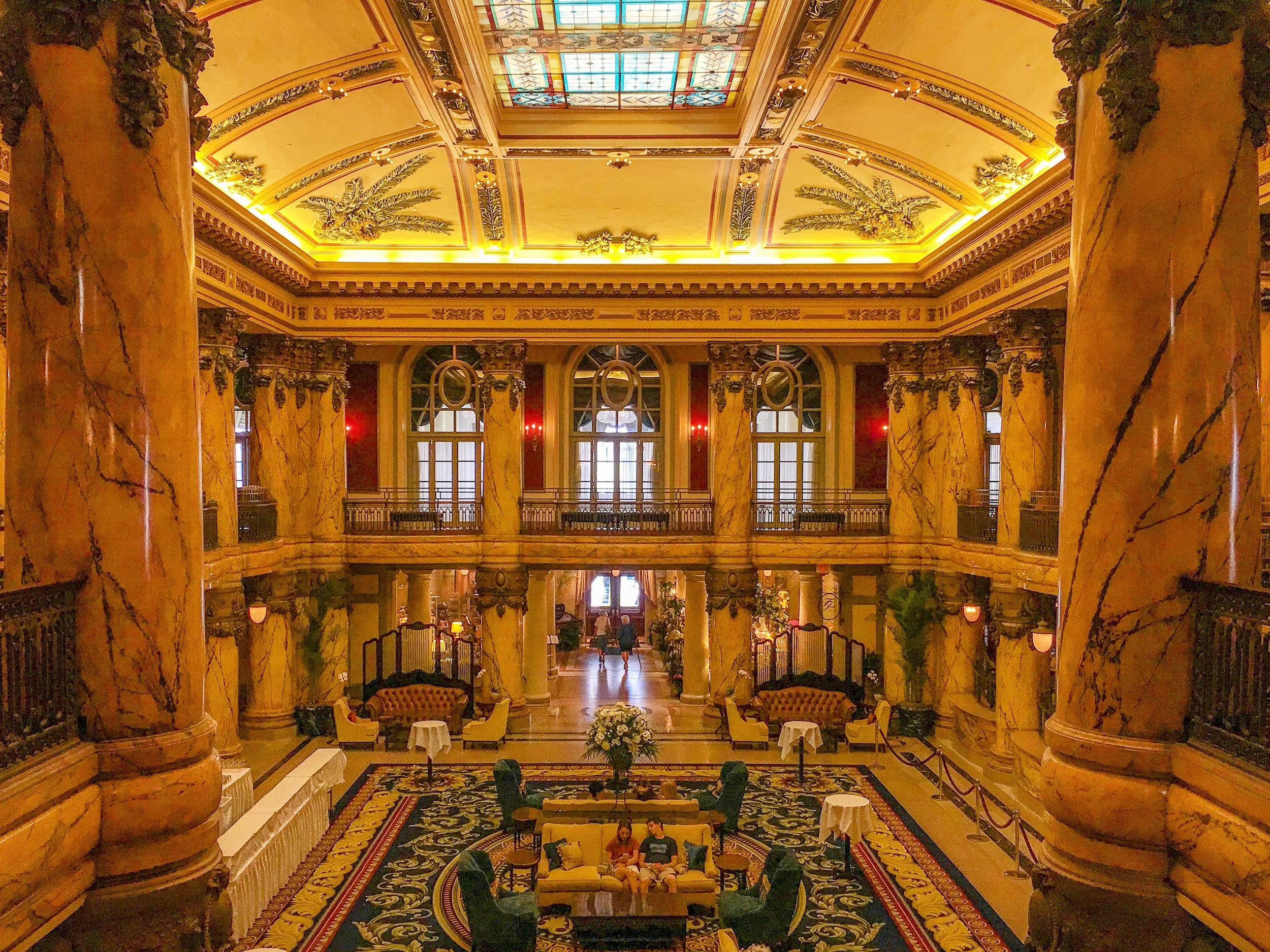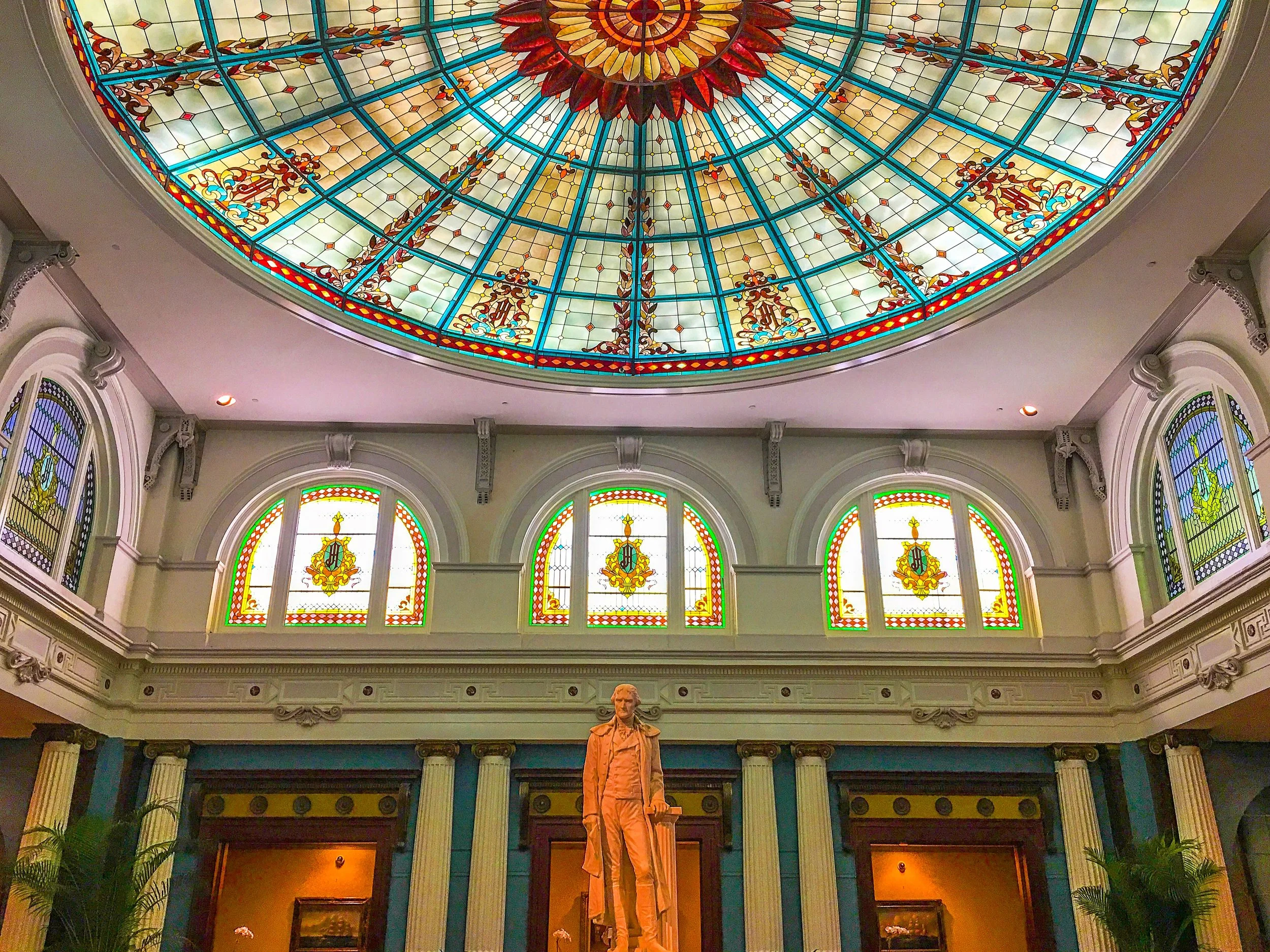 Construction of The Jefferson Hotel began in 1892 and its grand opening took place in 1895. A marble statue of Thomas Jefferson prominently stands tall under the magnificent Tiffany stained glass of the Palm Court lobby.