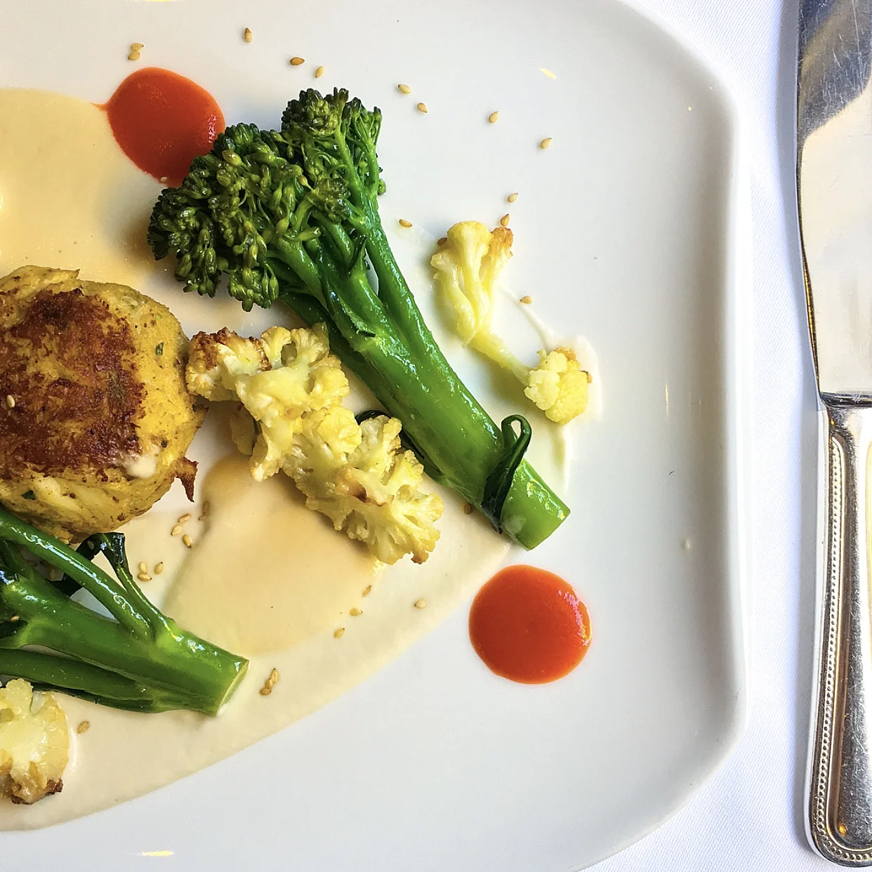 I mean, when aren't you in the mood for crab cakes? Always delicious and satisfying, these did not disappoint and I appreciated the broccolini and cauliflower added into the mix.