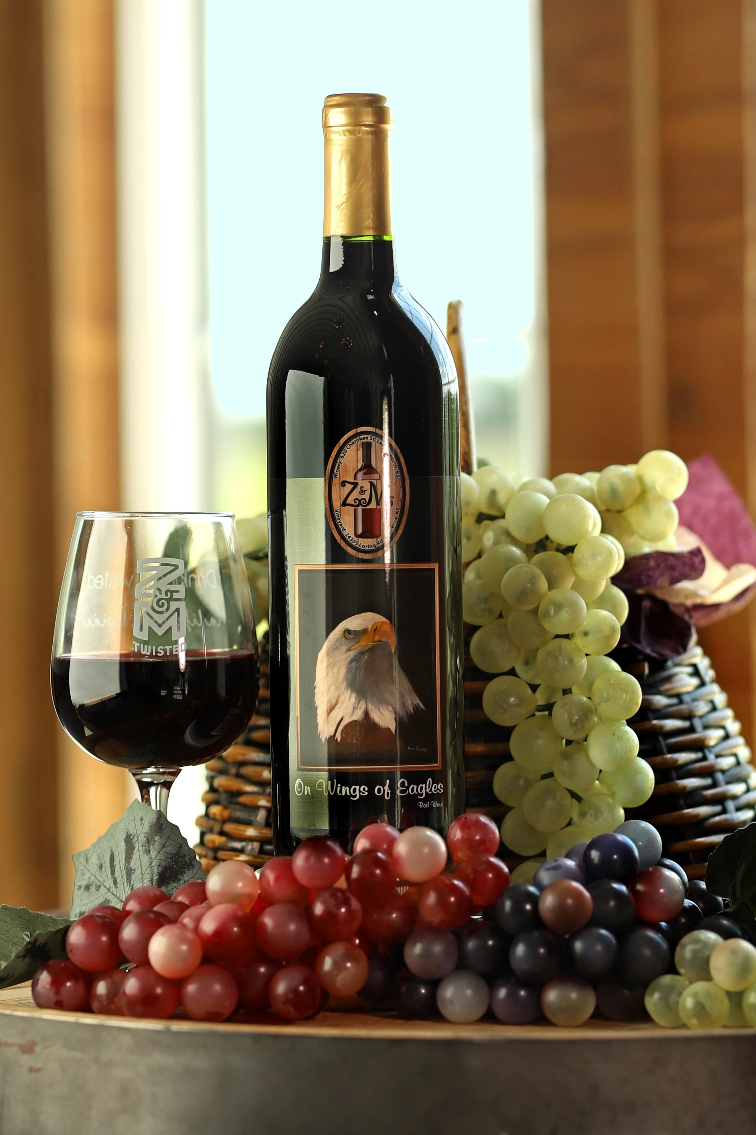 That depends on the season. In summer, our Peach Wine and Watermelon Wine are sunshine in a bottle — light, crisp, and perfect for Kansas evenings. When the weather cools, we reach for our bold reds: On Wings of Eagles, a deep, old-country style Chambourcin, or Dust Off 9-1-1, our smoky-Frontenac grape with deep cherry notes inspired by Bryan’s time as an Army aviator.